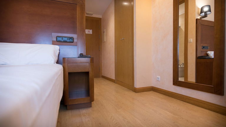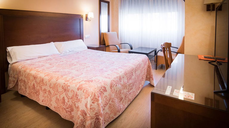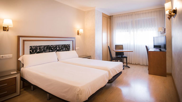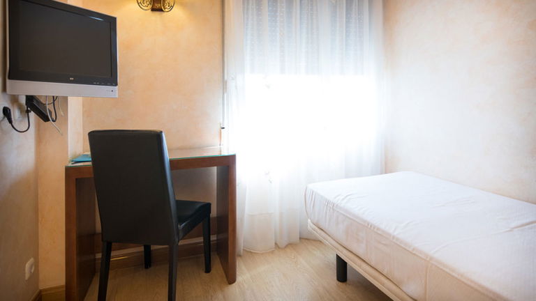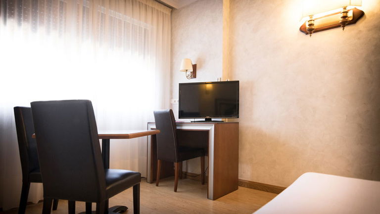 Habitación funcional de 12 m² equipada con cama matrimonial, escritorio, Wi-Fi gratuito y climatización. Pensada para quienes buscan un espacio cómodo y práctico en Burgos.