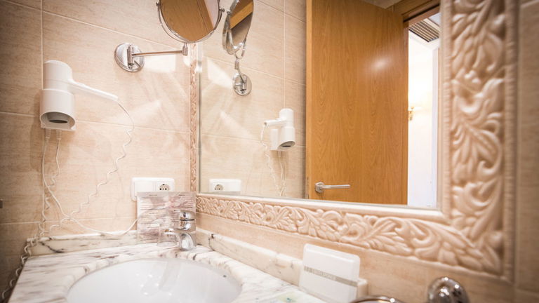 Habitación abuhardillada completamente equipada, exterior, decorada de forma sencilla y perfecta para pasar una noche en nuestro Hotel. Cuenta con escritorio, secador, artículos de aseo y internet Wifi o cable gratuito. Todas ellas tienen bañera. Sin acceso directo con ascensor.