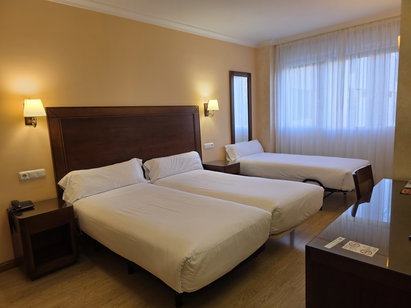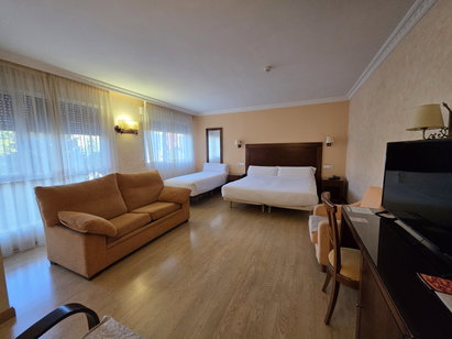 Chambre spacieuse à la décoration simple, équipée de la climatisation, du Wi-Fi gratuit, d'une télévision à écran plat et d'une salle de bains privative. Elle dispose de trois lits simples ou d'un lit double et d'un lit supplémentaire, selon disponibilité. Idéale pour les familles ou les petits groupes.